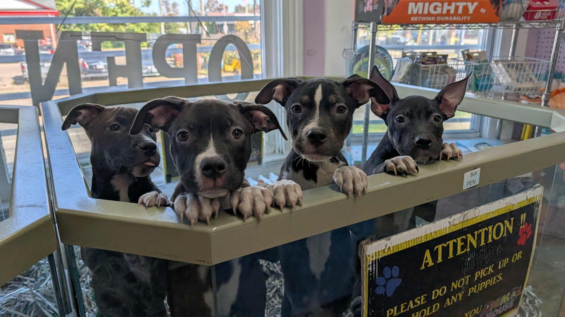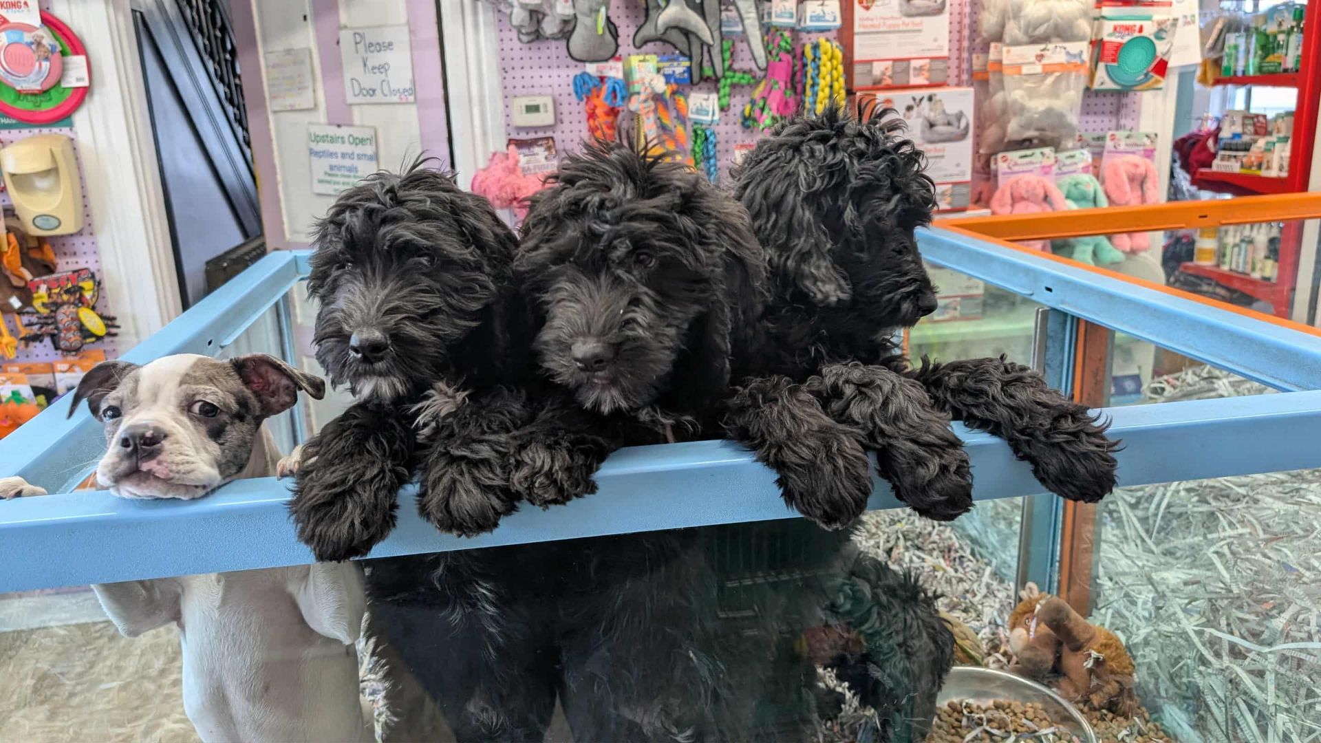 Most of our rescues are owner surrenders, but some come from abandon or abusive situations. Each dog has its own specific needs, and we choose homes based on these needs. If you think you would be the perfect family for any of our rescues, please call the store or stop in for more information about them!